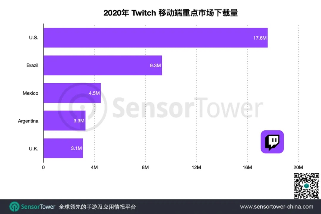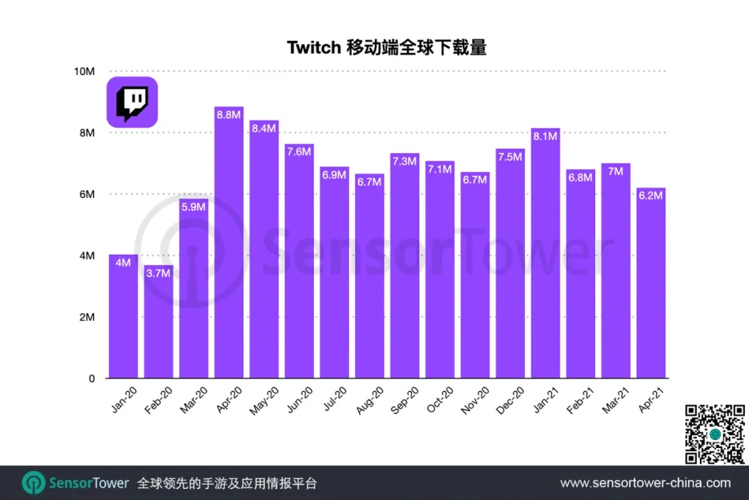 Twitch 移动端 2021 Q1 全球安装量达 2200 万,同比增长 62%
