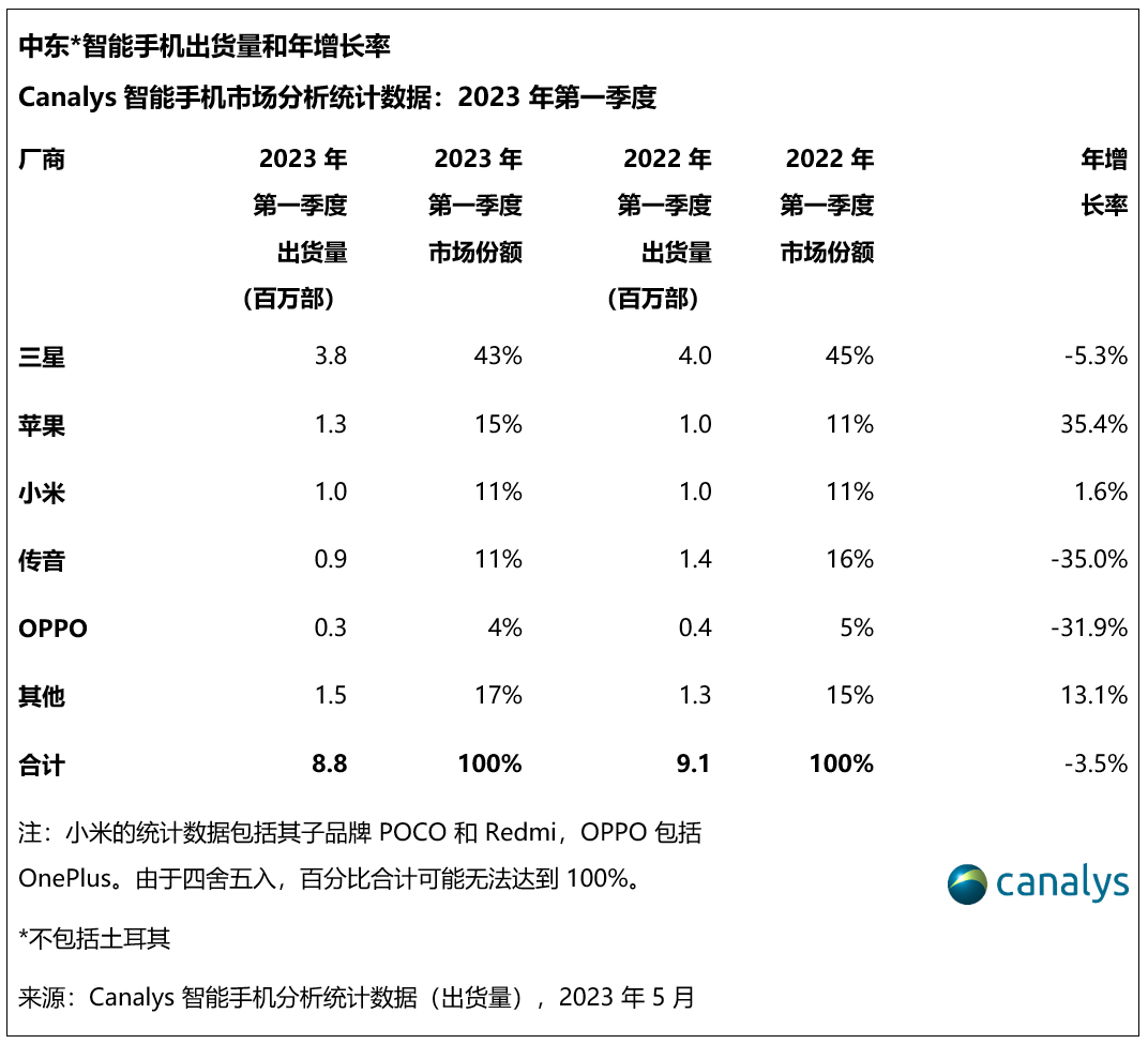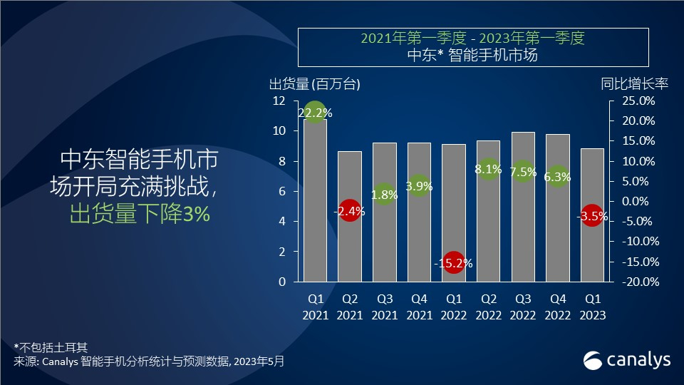 Canalys:2023 年中东智能手机市场开局充满挑战,跌幅达 3%